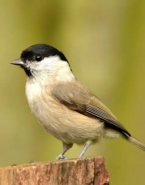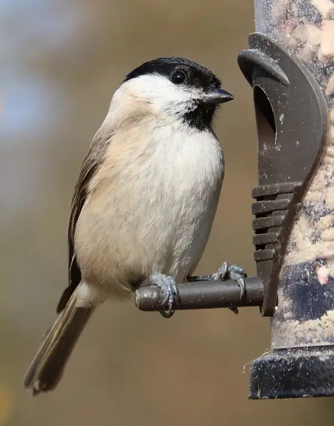Marsh Tits feed on insects and seeds, such as beech mast. Peanuts, seeds and fat may attract them to gardens, but usually only if there are ancient woodlands nearby (contrary to their name, they do not live in marsh land). They are particularly fond of black sunflower seeds.