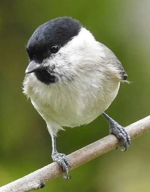 The female builds the nest, which is a cup of moss lined with feathers and hair, in a hole in a tree. They usually nest in deciduous trees, like willows or alders, but will sometimes use a box. The Marsh Tit's eggs are smooth and glossy, and white with brown markings. The female incubates the eggs by herself. After the young hatch, they are fed by both parents. The Marsh Tit is a Red List species owing to a large, rapid decline in the breeding population since the 1960s, most likely because of changes in land usage and woodland management.